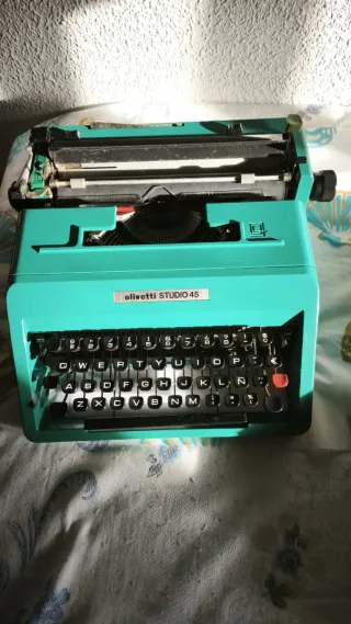 Máquina de escribir vintage Olivetti Studio 45 en color verde azulado. Diseño clásico. Teclado QWERTY. Va con su funda original.