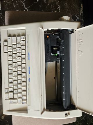 Funciona y escribe, tal como se puede verificar en una de las fotos. Uso a principios de los 90. La cinta escribe y en la última foto está la referencia del repuesto, aunque no sé si se puede conseguir el repuesto. Válida para ambientación de la época, coleccionismo, museos, etc