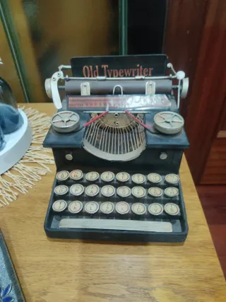 Detalle decorativo de una máquina de escribir antigua, ideal para añadir un toque retro a tu hogar. - Diseño clásico con teclas. - Acabado en negro y detalles metálicos.