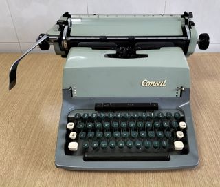 Máquina de escribir mecánica Olivetti Studio de Luxe, un clásico del diseño. - Color azul y verde pálido. - Teclado QWERTY.