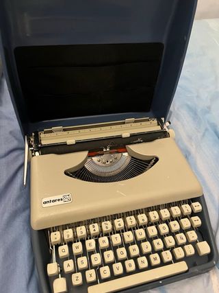 maquina de escribir portaltil co un tamaño pequeño para ser una maquina de escribir y sin uso y totalmente funcional marca antarea