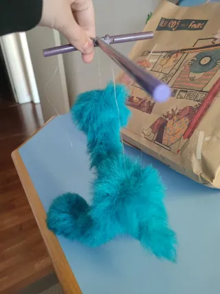 Marioneta de hilo artesanal, realizada a mano, representando a un personaje anciano tipo profesor o inventor. Cuenta con cabello y barba blancos, gafas, rasgos muy expresivos y vestimenta de tela (chaqueta mostaza, camisa clara y pantalón marrón). Se mueve mediante hilos tradicionales, ideal para: • Coleccionistas • Teatro de marionetas • Decoración artística • Regalo original 🪡 Materiales: tela, madera y cuerda 📏 Estado: buen estado (ver fotos) 🎭 Estilo clásico / vintage 🏠 Procedencia: artesanal (no industrial)