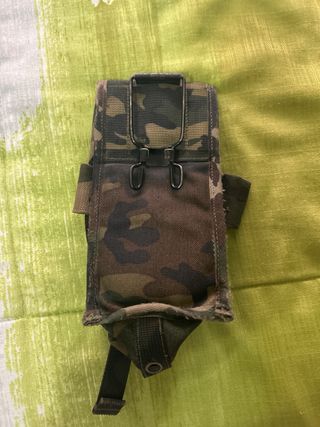 Bolsillo de camuflaje militar diseñado para portacargadores. - Cierre con hebilla de plástico. - Correa ajustable. - Tejido resistente.