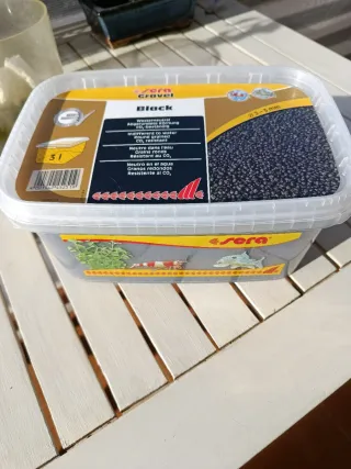 Grava negra para acuario de la marca Sera. - Tamaño del grano: 2-3 mm. -Granos redondos. - Resistente al CO2. - Neutra en agua. -Limpia y lavada. -Contenido 3 litros (Unos 4,2kg)