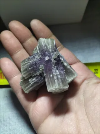 Ejemplar de mineral aragonito natural. - Minglanilla - cuenca - Cristales prismáticos alargados. - Tonalidades violáceas y grises. - para envío pedido mínimo de 10 euros.