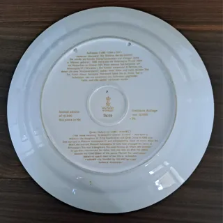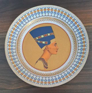 Plato decorativo de porcelana de la marca Kaiser, fabricado en Alemania Occidental. Presenta un diseño inspirado en la reina Nefertiti. N° 3669 de 10000. Obra de arte. - Diámetro: 32 cm. - Diseño de Nefertiti. - Porcelana de alta calidad.1.1