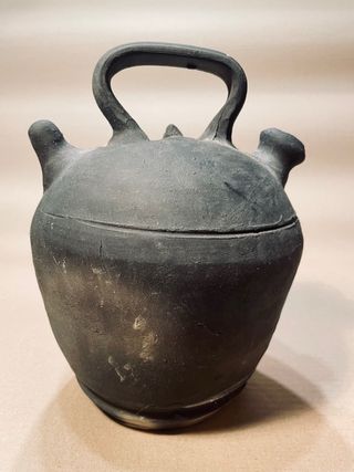 Botijo de cerámica negra, hecho a torno y sin esmaltar, de estilo tradicional campesino. Pieza funcional, pensada para uso diario, con gran capacidad de enfriar el agua de forma natural. Dispongo de mas botijos en mi estado , puedo hacer oferta por pack. Características: • Cerámica negra porosa • Dos pitorros (beber y servir) • Asa superior robusta • Fabricación artesanal • Uso tradicional, no decorativo moderno 📆 Época: finales del siglo XIX / primeras décadas del XX 📏 Medidas: ( altura 24 cm y ancho 20) 📦 Estado: buen estado para su antigüedad, desgaste superficial propio del uso y del paso del tiempo. Sin roturas visble