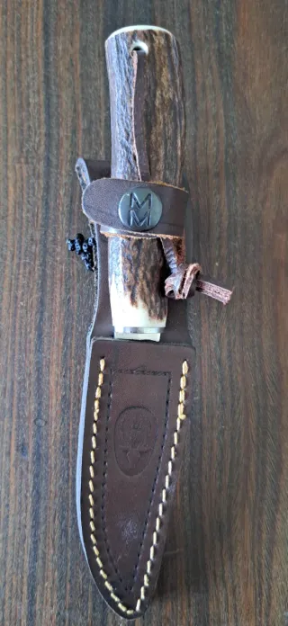 Abrecartas Muela con empuñadura de asta. - Empuñadura de asta. - Funda de cuero. - Detalle de logo en la funda.169.7