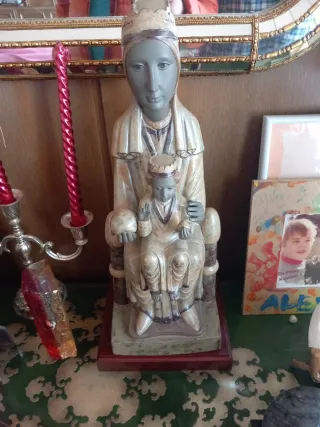 Figura de la Virgen de Montserrat. De Lladró numerada - Representación religiosa. - Base de madera.