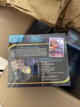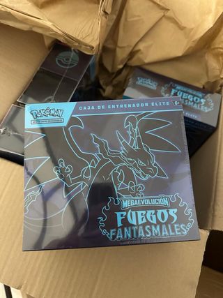 Cajas de entrenador élite de Pokémon, colección Fuego Fantasmal. Perfectas para coleccionistas. - Diseño con Charizard. - Idioma: Español. - Edad recomendada: 6+.