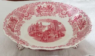 Frutero de la reconocida marca La Cartuja de Sevilla, con un diseño clásico y elegante Fabricado por Pickman SA Modelo con tres pies. Decoración en color rojo. Diseño inspirado en paisajes. En buen estado, nada roto pero el lacado presenta rayas del tiempo No lo envio, entrega en mano Más artículos en mi perfil