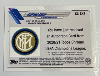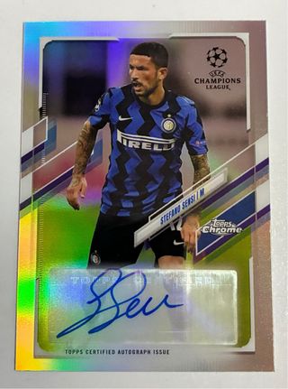 Tarjeta de colección de Stefano Sensi de Topps Chrome. - Edición certificada de autógrafo. - Incluye el logo de la UEFA Champions League.
