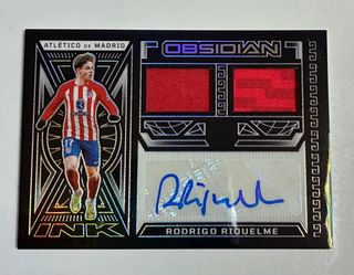Tarjeta de colección de Rodrigo Riquelme de Atlético de Madrid. - Incluye autógrafo. - Fragmento de jersey. - Edición limitada /199.