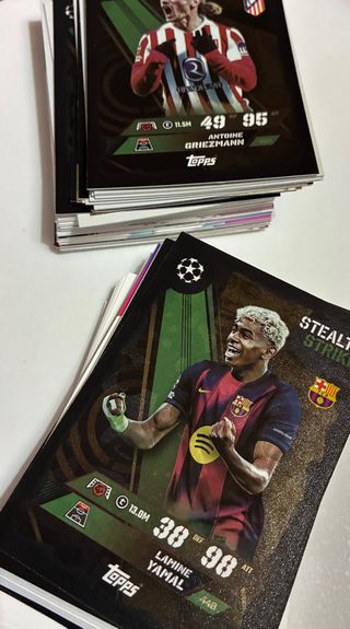 Lote de cromos Topps Match Attax. - Incluye cromo de Antoine Griezmann. - Incluye cromo de Lamine Yamal.