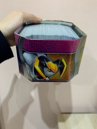 Lote de cartas del juego de cartas coleccionables Pokémon. - Lata metálica con diseño de Pokémon. - Incluye varias cartas de Pokémon. Precio negociable