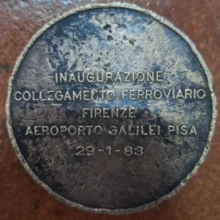 Medalla conmemorativa de la inauguración de conexión ferroviaria entre el aeropuerto Galileo Galilei de Pisa y Florencia, con fecha 29 de enero de 1.983. - Diseño detallado del rostro de Galileo Galilei.