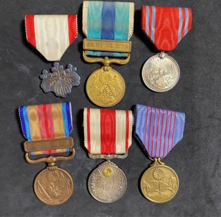 Conjunto de 6 medallas japonesas, civiles y militares, del período de la Segunda Guerra Mundial. Tal y como se ve en las fotografías. Son: - Orden del Sol Naciente 8ª clase - Guerra Ruso-Japonesa - Cruz Roja - Incidente en China 1937-45 - Ceremonia de entronización del emperador Taisho - Celebración conmemorativa de la fundación nacional Se escuchan ofertas!