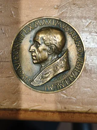Medalla conmemorativa del Papa Pío XI. - Anverso: Retrato del Papa Pío XI. - Reverso: Inscripción PIVS XI PONTIFEX MAXIMVS ANNO JUBILAEI MCMI y firma ISTRUZZI. - Material: Bronce.