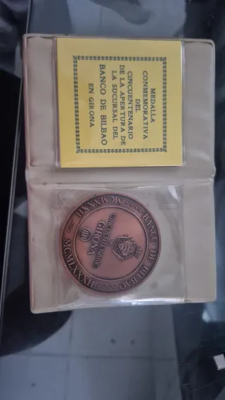 Medalla conmemorativa del Banco de Bilbao. - Conmemora 50 años en Gerona. - Periodo: 1932-1982. - Diseño con logo BB. Escucho ofertas!!!!