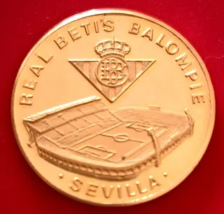 Medalla conmemorativa del Real Betis Balompié, campeón de la Copa del Rey en la temporada 1976-1977. 10 gramos de oro, pureza de 900. - Diseño de copa. - Inscripción CAMPEÓN DE ESPAÑA y 1ª COPA DE SU MAJESTAD EL REY. - Totalmente Nueva.