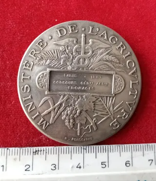 Medalla de plata francesa con punzón en el anverso y lateral de Société d'encouragement à l'agriculture sin grabar en el cartucho. Grabador: Frédéric-Charles Victor de Vernon, escultor y grabador de medallas francés, nacido el 17 de noviembre de 1858 en París y fallecido el 28 de octubre de 1911 en la misma ciudad. Estado impecable. La medalla se enviará con su estuche original
