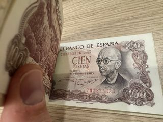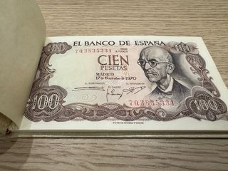 Carnet de 30 billetes CORRELATIVOS de 100 pesetas, SIN CIRCULAR. Conserva su estado original en un carnet, regalo de comunion! En la caratula del carnet viene un nombre y una fecha! Serie 7Q... - 30 billetes de 100 pesetas. - correlativos - Sin circular. Preferible trato en mano. Hago envíos ordinarios (1€) o certificados (6€). Pago mediante bizzum o transferencia! NO LEER Euro, columnario, moneda, plata, real, peseta, real, escudo, billete, onza, colección, numismática, medalla, oro, cobre, Isabel II, resello, inversión, NGC, NCV, patagon, ducaton, franco.