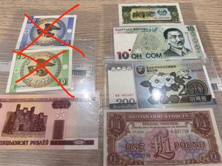 Colección de billetes de diferentes países y denominaciones. Todos se encuentran en estado sin circular. - Billetes de 50 y 10 de Kirguistán. - Billetes de 200 de Corea del Norte. - Billete de 50 rublos de Bielorrusia. - Billete de 1 libra de las Fuerzas Armadas Británicas. - Billete de 5 de Laos. Precio por unidad. Preferible trato en mano. Hago envíos ordinarios (1€) o certificados (5,5€). Pago mediante bizzum o transferencia! NO LEER Euro, columnario, moneda, plata, real, peseta, real, escudo, billete, onza, colección, numismática, medalla, oro, cobre, Isabel II, resello, inversión, NGC, NCV, patagon, ducaton, franco.