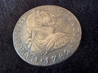 Moneda de 8 Reales acuñada en México en el año 1782. Presenta el busto del rey Carlos III. - Canto: VIRTVS VNIVER SALIS - Leyenda: CAROLVS III DEI GRATIA 1782 - Peso: 27.07 gramos - Diámetro: 38 mm Preferible trato en mano. Hago envíos ordinarios (1€) o certificados (5,5€). Pago mediante bizzum o transferencia! NO LEER Euro, columnario, moneda, plata, real, peseta, real, escudo, billete, onza, colección, numismática, medalla, oro, cobre, Isabel II, resello, inversión, NGC, NCV, patagon, ducaton, franco.