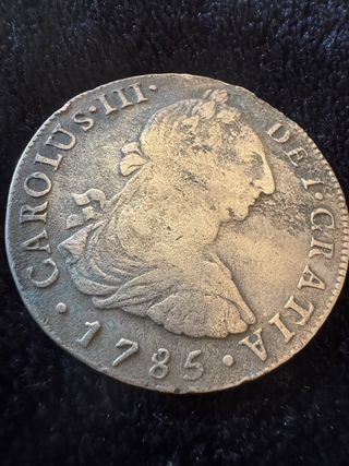 Moneda antigua de 8 Reales acuñada en Lima en el año 1785, correspondiente al reinado de Carlos III. Corrosiones Naufragio. Pecio. - Canto con inscripciones. - Diseño detallado del busto del rey. - Reverso con escudo. - Pieza histórica de colección. Preferible trato en mano. Hago envíos ordinarios (1€) o certificados (5,5€). Pago mediante bizzum o transferencia! NO LEER Euro, columnario, moneda, plata, real, peseta, real, escudo, billete, onza, colección, numismática, medalla, oro, cobre, Isabel II, resello, inversión, NGC, NCV, patagon, ducaton, franco.