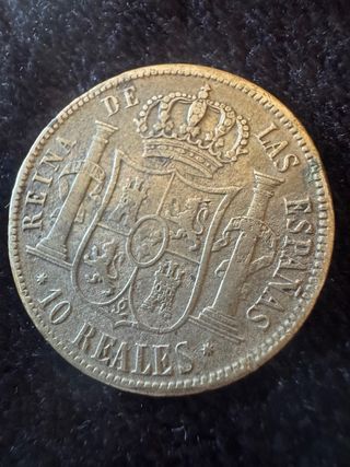Moneda de 10 reales acuñada en Barcelona en el año 1860. Presenta el busto de Isabel II. - Año: 1860 - Lugar de acuñación: Barcelona - Denominación: 10 Reales - Anverso: Isabel II - Leyenda: ISABEL 2ª POR LA G. DE DIOS Y LA CONST. Preferible trato en mano. Hago envíos ordinarios (1€) o certificados (6€). Pago mediante bizzum o transferencia! NO LEER Euro, columnario, moneda, plata, real, peseta, real, escudo, billete, onza, colección, numismática, medalla, oro, cobre, Isabel II, resello, inversión, NGC, NCV, patagon, ducaton, franco.