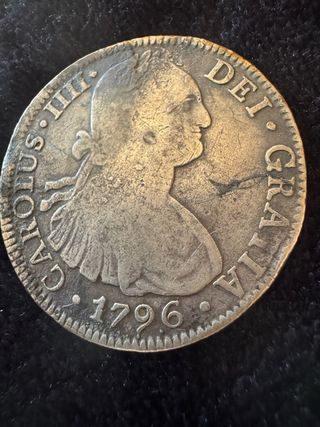 Moneda de 8 Reales acuñada en México en el año 1796. Presenta el busto del rey Carlos IV - Año: 1796 - Ceca: México - Denominación: 8 Reales - Anverso: Busto de Carlos IV Preferible trato en mano. Hago envíos ordinarios (1€) o certificados (6€). Pago mediante bizzum o transferencia! NO LEER Euro, columnario, moneda, plata, real, peseta, real, escudo, billete, onza, colección, numismática, medalla, oro, cobre, Isabel II, resello, inversión, NGC, NCV, patagon, ducaton, franco.