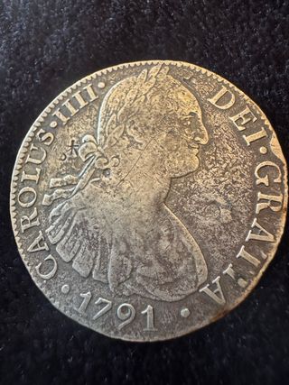 Moneda de 8 Reales acuñada en México en el año 1791. - Plata - Canto estriado - Diseño de Carlos III Preferible trato en mano. Hago envíos ordinarios (1€) o certificados (6€). Pago mediante bizzum o transferencia! NO LEER Euro, columnario, moneda, plata, real, peseta, real, escudo, billete, onza, colección, numismática, medalla, oro, cobre, Isabel II, resello, inversión, NGC, NCV, patagon, ducaton, franco.