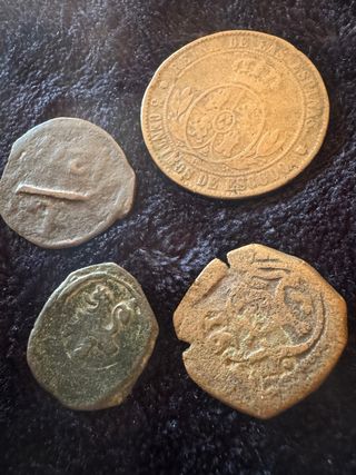 Conjunto de cuatro monedas antiguas con grabados distintivos. Preferible trato en mano. Hago envíos ordinarios (1€) o certificados (6€). Pago mediante bizzum o transferencia! NO LEER Euro, columnario, moneda, plata, real, peseta, real, escudo, billete, onza, colección, numismática, medalla, oro, cobre, Isabel II, resello, inversión, NGC, NCV, patagon, ducaton, franco.