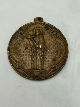 Medalla antigua con diseño religioso. resto del Pardo. primer cuarto 1900, con relieves por los dos lados. Coleccionistas colecciones antiguedades - Material metálico. - Diseño grabado.