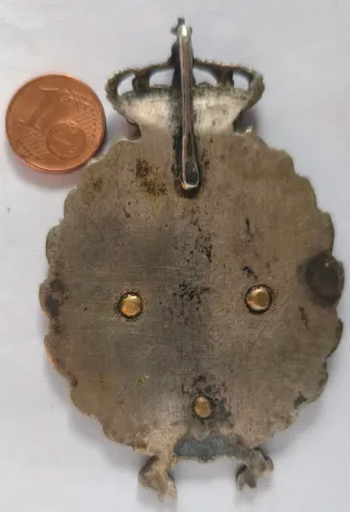 Medalla ovalada con corona y escena religiosa. Imitación. - Inscripción: REAL CONGREGACION DE ARQUITECTOS NUESTRA SEÑORA DE BELEN. - Año: 1695. De Resina plateada. 6 cm de largo. No realizo envíos, entrego en Madrid zona plaza Legazpi