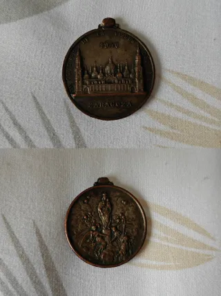 Medalla conmemorativa del XIX Centenario de la Venida de la Virgen del Pilar a Zaragoza, celebrada en el año 1940. Anverso: Muestra un relieve detallado de la Basílica de Nuestra Señora del Pilar en Zaragoza, con las inscripciones "CENTENARIO DE LA VIRGEN 1940" rodeando la parte superior y "ZARAGOZA" en la parte inferior. Reverso: Presenta una escena religiosa, que representa la aparición de la Virgen María al apóstol Santiago sobre la columna (el Pilar). Muy bien conservada. Ver foto