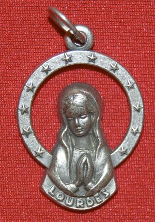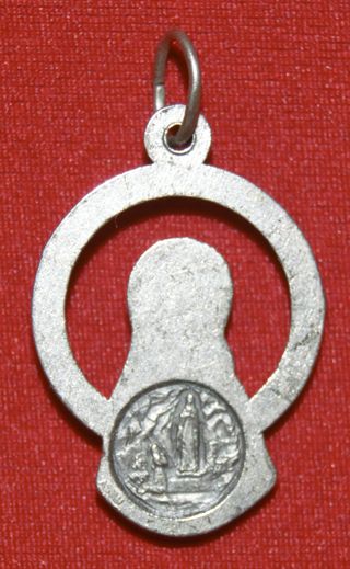 Medalla religiosa de Nuestra Señora de Lourdes y Aparición en la gruta Medidas Aproximadas: 25 mm x 20 mm #159