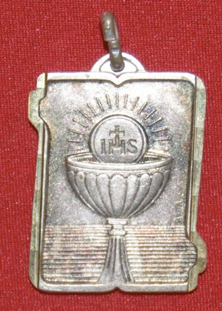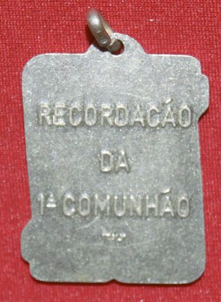 Medalla religiosa Primera Comunión Inscripción en Portugués Medidas Aproximadas: 27 mm x 21 mm #178
