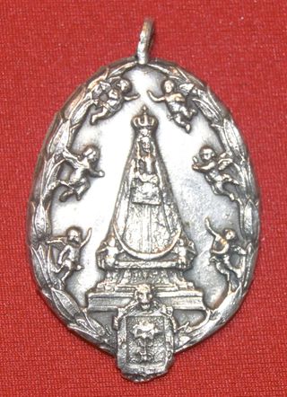 Medalla religiosa de Nuestra Señora de Begoña (Bilbao) y Basílica de Nuestra Señora de Begoña Medidas Aproximadas: 20 mm x 13 mm #131