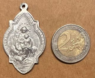 Medalla religiosa de La Virgen del Carmen y El Sagrado Corazón de Jesús Inscripción: Virgo Carmeli Medidas Aproximadas: 19 mm #76