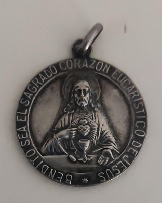 Preciosa medalla de plata con doble advocación, al Sagrado Corazón de Jesus y Madre de los Clarines. Muy bonita, la pieza de la foto. Precio no negociable. Pago mediante Bizum, envío por mensajería o wallapop envíos. Es posible agrupar artículos para ahorrar envíos.
