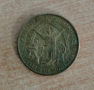 Medalla religiosa con la imagen del Sacré-Cœur de Montmartre. Moneda de catedrales de Francia De la serie Cathedrales et sanctuaires de France. Se trata de una medalla de la monnaie de Paris con la imagen del mosaico del Sagrado Corazon de Montmartre. Jeton turistico - Inscripción: Christ de la mosaïque Sacré-Cœur de Montmartre. - Diseño detallado de la figura central y figuras laterales.
