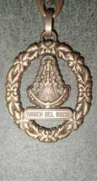 Precioso llavero de la Virgen del Rocío, de la marca Chic. Es de metal con un bonito acabado. - Lleva una medalla con la imagen de la Virgen del Rocío. - Incluye un anillo para colgar llaves. - Metal de color bronce.