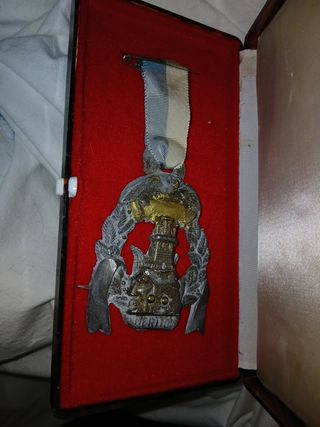 Escudo ALICANTE AL MERITO. antigua medalla antigua al mérito grande con cinta y alfiler para poderla hacer la chaqueta necesita limpieza