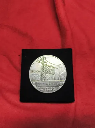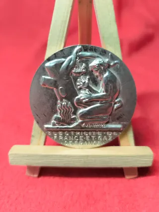 Medalla conmemorativa de Électricité de France. Presenta un diseño detallado con figuras. - Diseño circular. - Grabado de Électricité de France en la base.