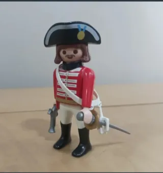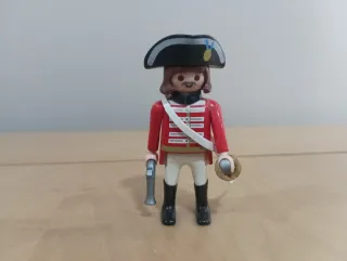 Figura de Playmobil de un general del ejército inglés. - Incluye sombrero de época con medalla. - Chaqueta roja con detalles blancos. - Pantalones blancos y botas negras. - Accesorios: pistola y sable. Opción de agrupar anuncios y de realizar envíos ordinarios por Correos
