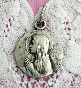 Medalla religiosa con la imagen de la Virgen María en actitud de plegaria. Diseño circular con un - Diseño: Virgen orante.