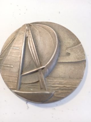 Preciosa medalla con forma ovalada que representa un velero navegando. Es un artículo ideal para coleccionistas o amantes de los deportes náuticos. - Material: Metal. - Diseño: Velero en relieve. - Estado: Usado, en buenas condiciones.
