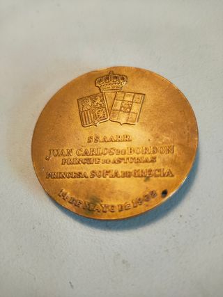 Medalla reyes Juan Carlos y Sofía 4'3 cm diámetro. No está perfecta. Se ven los detalles en la foto. En Cerdanyola del Vallés, Barcelona. Mira mis otras ventas, todo es negociable, posibilidad de combinar con otras ventas de mi perfil para ahorrar gastos de envío