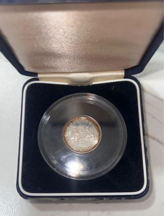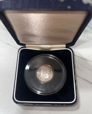 Reproducción medalla coleccionable que representa una moneda de 1870 del Gobierno Provisional (1868–1871), tras la caída de Isabel II con la inscripción de República Española Vendida en década de los 90 en fascículos coleccionables